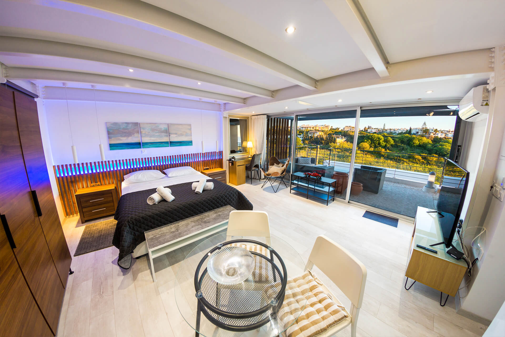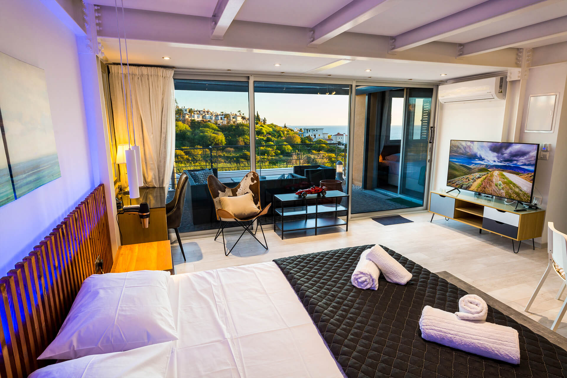 Additionally on the 2nd floor there is also an individual and separate the spacious modern studio room which is perfect for guests staying remotely so they will have there private space. The en-suite studio room features a fully equipped bedroom with its own kitchen, bathroom, aircon, desk, balcony and 52 inch TV.