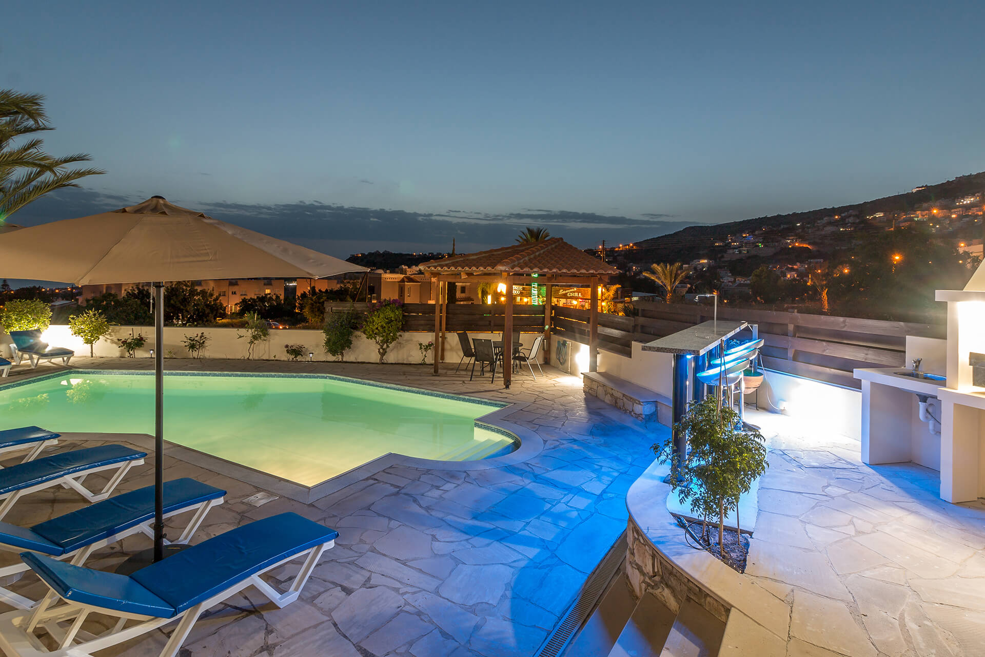 This family 4-bedroom villa in Peyia village is designed and decorated to ensure you have the laid back, comfy and rejuvenating holidays. Cosy, contemporary and charming, the villa with rustic mixed interior and plenty of green space around it has 4 large size bedrooms with 3 bathrooms as well as spacious living area and lots of open space to play and relax. The fun doubles up with a private swimming pool where you can chill-out in the warm Cypriot evenings accompany with BBQ facilities.